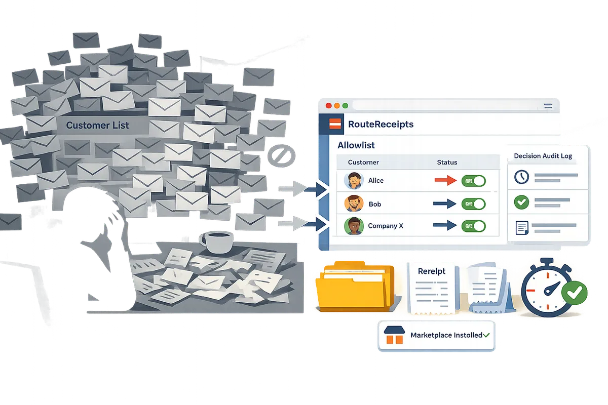 Selective Receipt Routing for Stripe App: Problem–Solution Guide and 5‑Minute Setup One unintended receipt sent to a corporate payer can create two hours of inbox triage and expense reconciliation work. Selective receipt routing for stripe app is a feature that lets businesses send Stripe receipts only to chosen customers, avoiding unnecessary emails for those who do not require them. RouteReceipts is a Stripe Marketplace app we built that adds an allowlist, a dashboard-native UI, and a