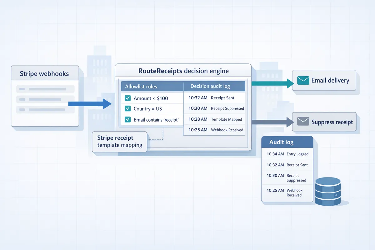 Why Did We Build Route Receipts? Routing every Stripe receipt to all customers produces inbox clutter and wastes finance time for teams that manage hundreds of transactions monthly. Route Receipts gives Stripe teams a dashboard-native flow to selectively send receipts and maintain allowlists without custom webhooks. This article explains the product rationale, technical playbook, and implementation templates for Route Receipts so Stripe teams can selectively route receipts and manage all